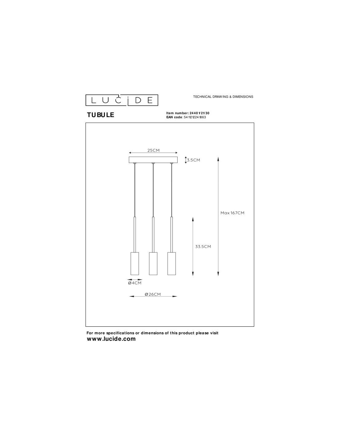 Avec ses dimensions de 26 cm de diamètre pour 167 cm de hauteur, la suspension offre un rendu moderne et agréable.