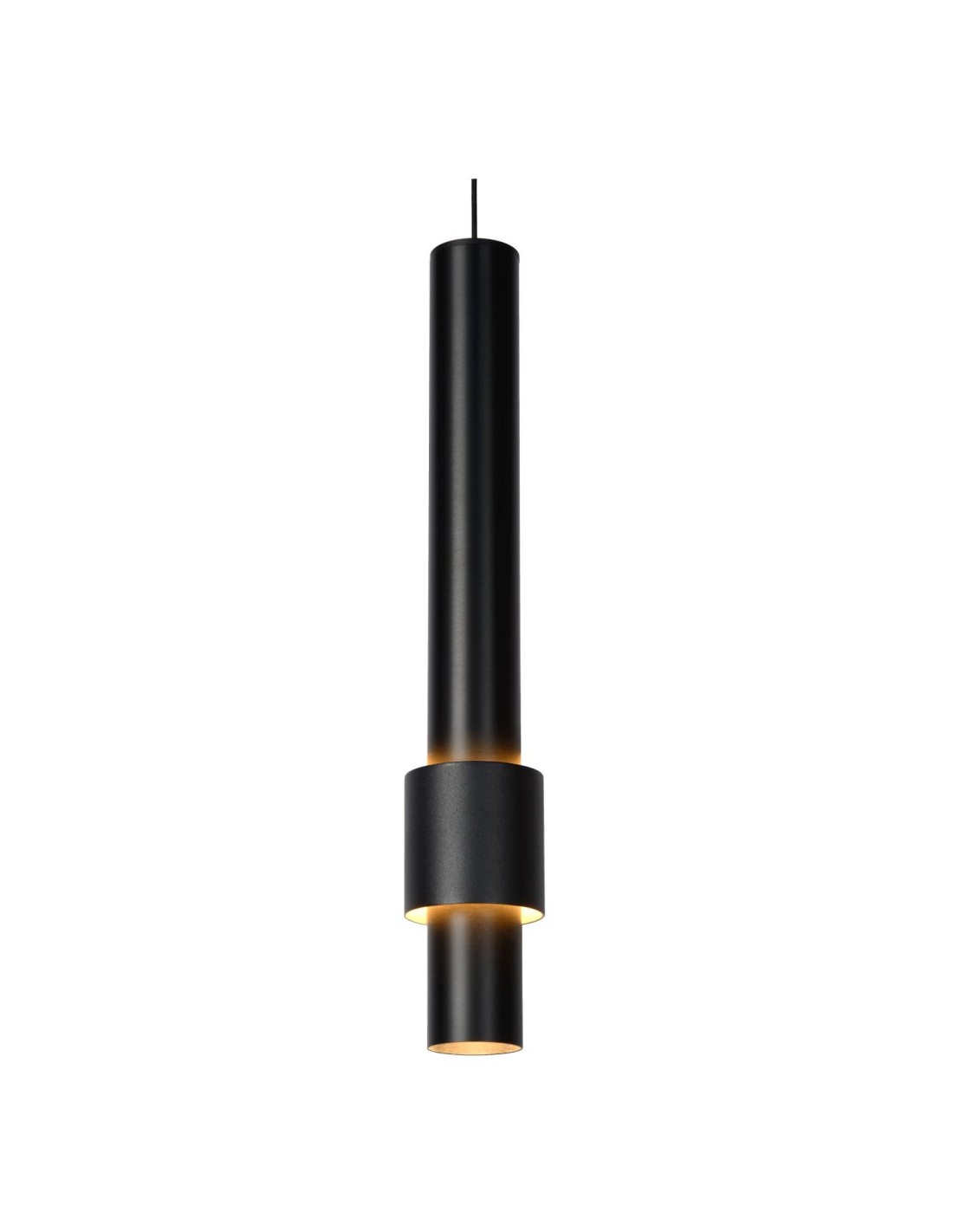 La suspension Margary de Lucide est un luminaire LED intégré au design contemporain en aluminium noir, conçu pour apporter une touche élégante et graphique aux intérieurs modernes.