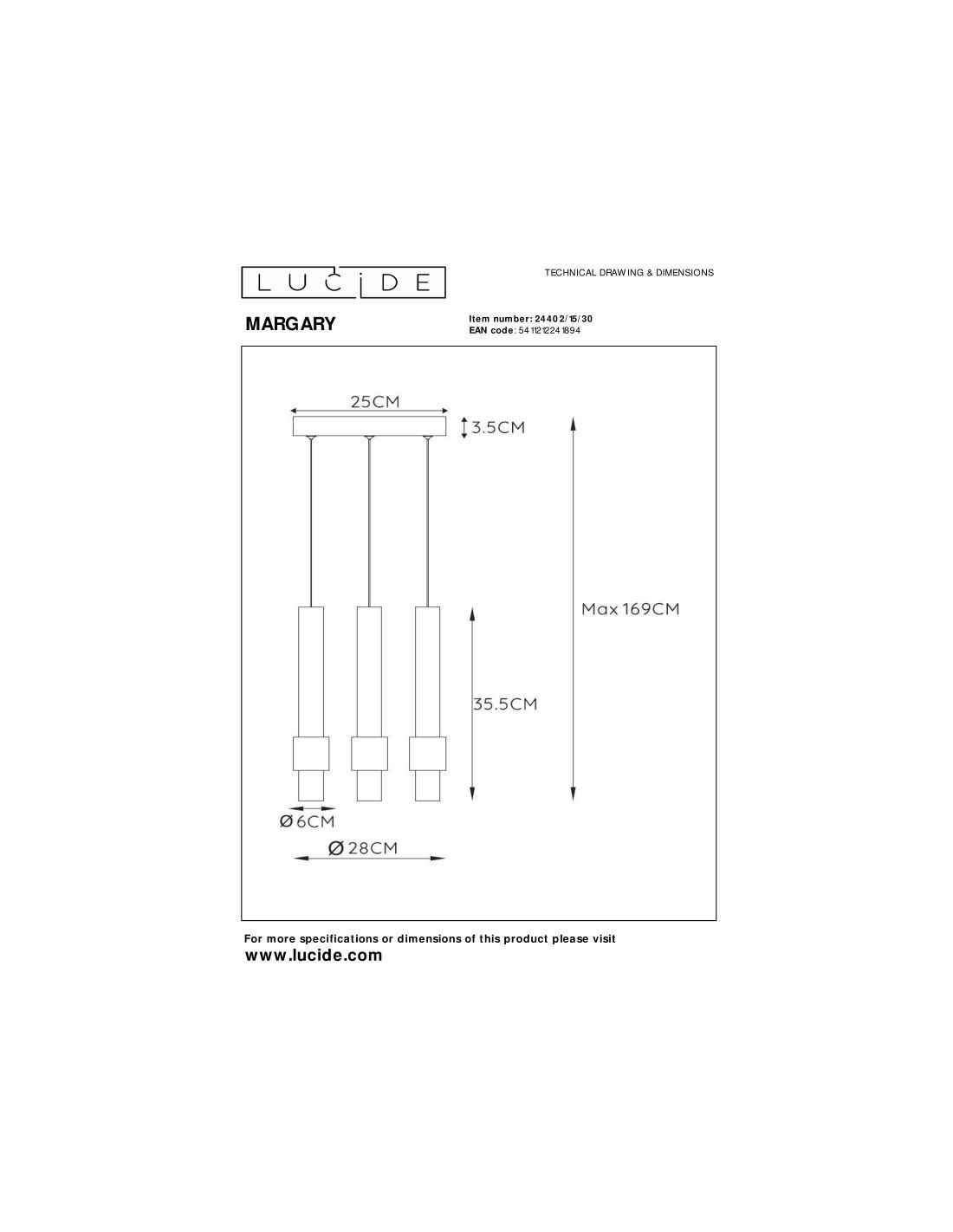 Suspension Led Diam. 28 cm Dimmable 3x4W 2700K Noir - Lucide - Margary