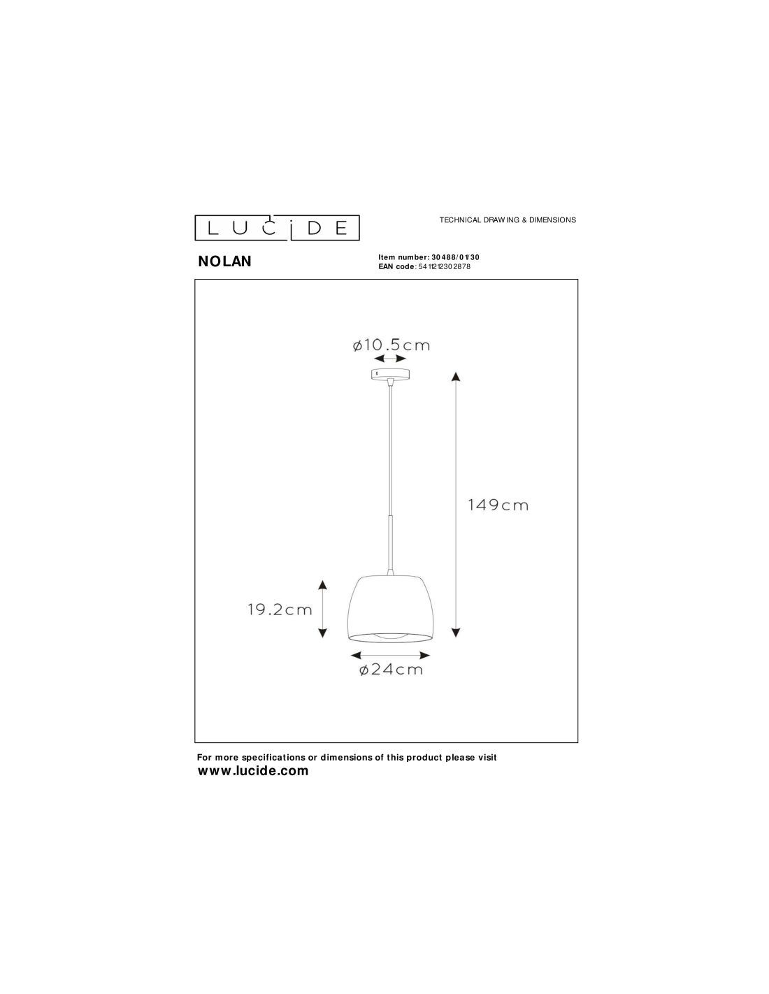 • Consommation énergétique: 1x60W / 230V / A intensité variable (Ampoule non incluse)