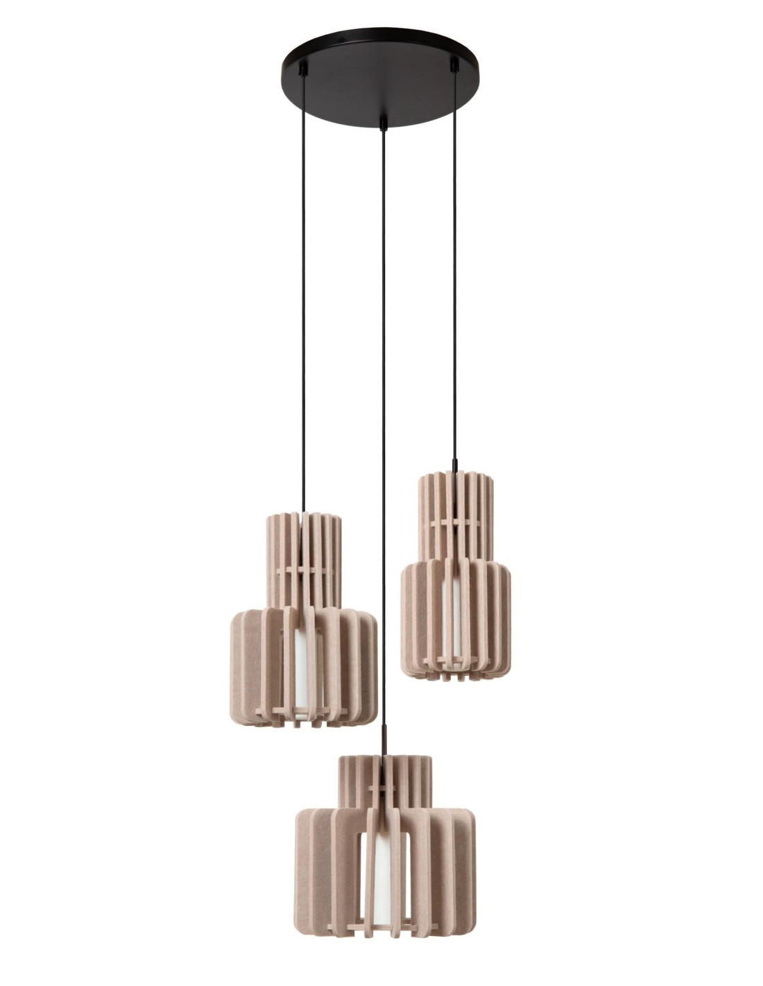 Suspension feutrine 3 points lumineux E27 taupe - Lucide - Rollo