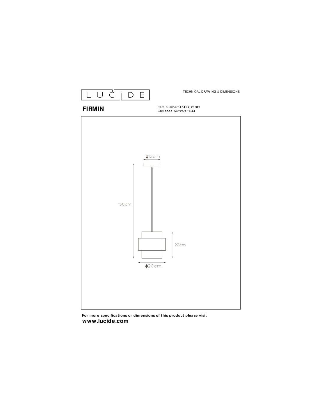 • Dimensions: Diam. 20 cm x Haut.150 cm
