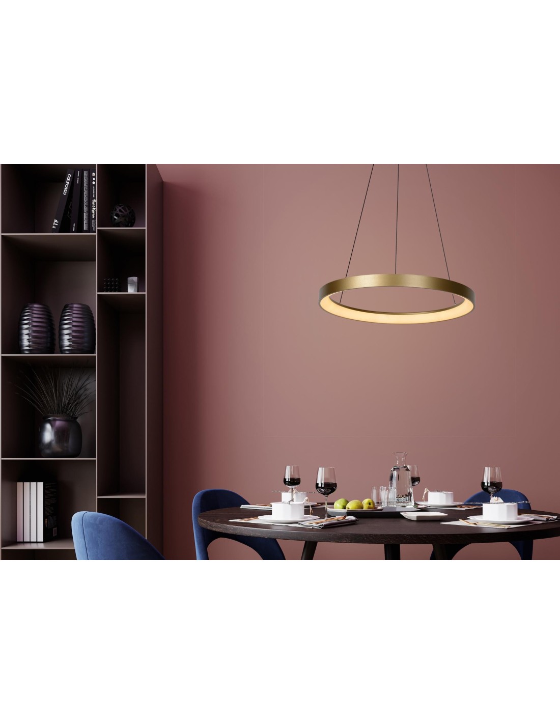 La combinaison parfaite pour un dîner réussi ? Une bonne compagnie, de bons petits plats, de délicieuses boissons et la lampe suspendue Vidal, bien sûr. Le lustre ouvert, en forme d'anneau, est suspendu à une tête ronde au plafond à l'aide de trois câbles fins. La lumière extrêmement chaude est le partenaire idéal à table. De plus, vous pouvez facilement connecter Vidal à un dimmer externe. Réglez la hauteur de cette lampe suspendue jusqu'à un maximum de 150 centimètres et votre table à manger bénéficiera toujours de la lumière d'ambiance idéale. Laissez venir vos convives.