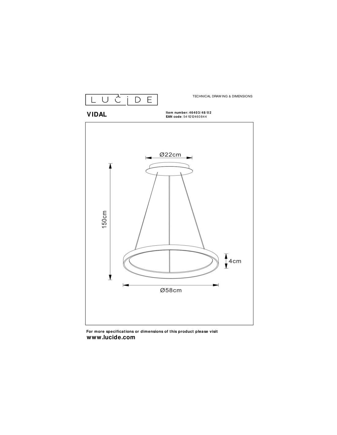 • Consommation énergétique: 1x48W / 230V / A intensité variable (Ampoule incluse)