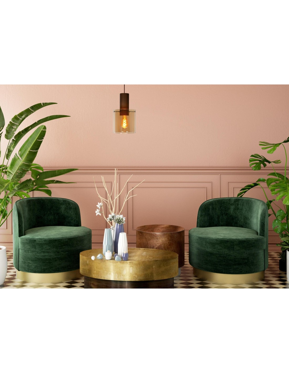 Son abat-jour en verre ambre diffuse une lumière chaude et accueillante, idéale pour créer une ambiance cosy.