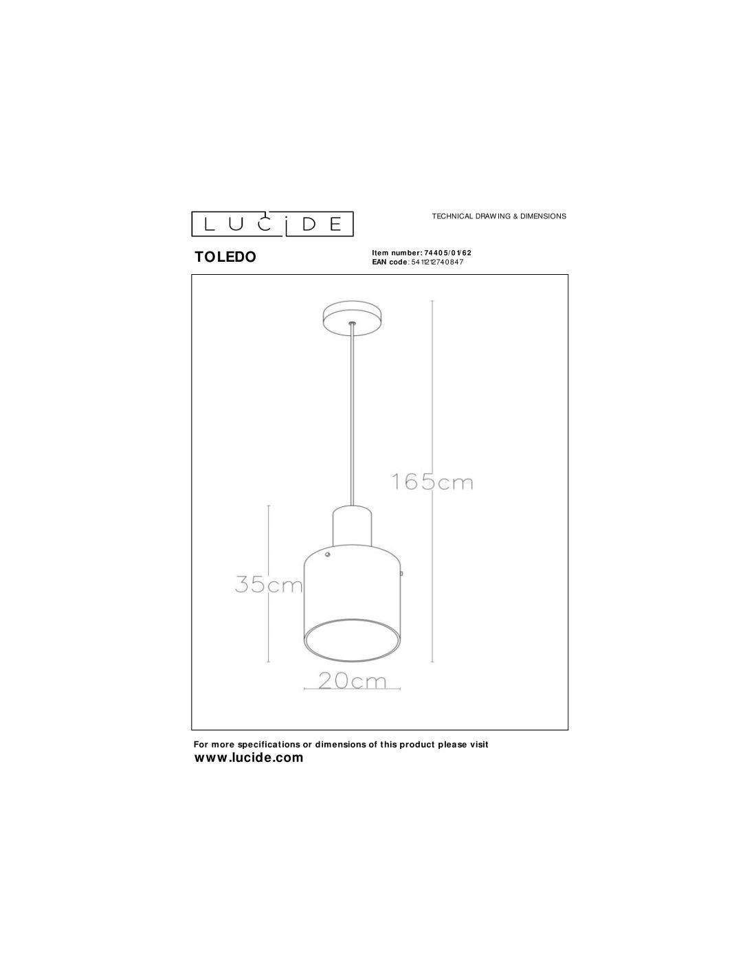 Suspension Diam. 20 cm 1xE27 40 W Dimmable Ambre - Lucide - Toledo