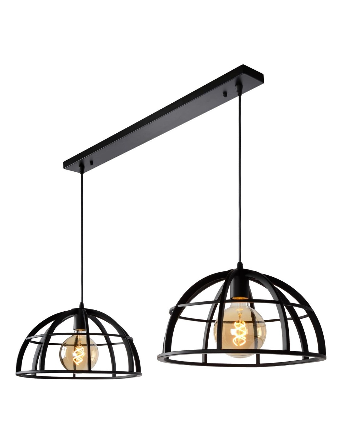 Suspension Led Dimmable 60 W 2xE27 Métal Noir - Lucide - Dikra