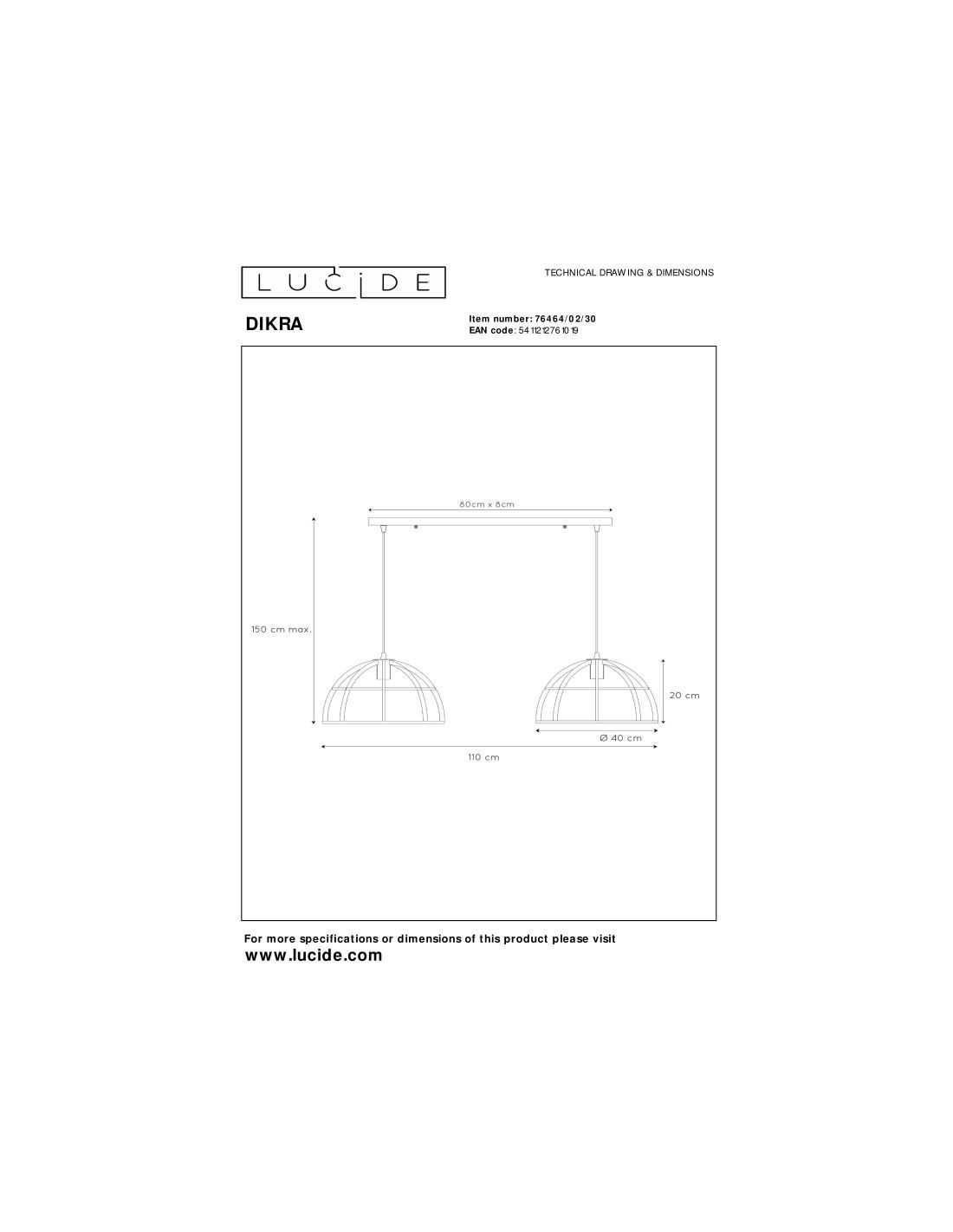 Ses deux sources lumineuses équilibrées offrent un éclairage harmonieux, tandis que sa largeur de 110 cm et sa hauteur réglable en font un élément décoratif imposant et adaptable à chaque espace.