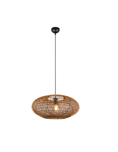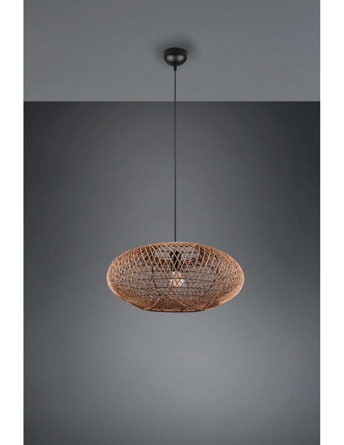Suspension Sisal naturel métal noir, réglable hauteur - Trio - Hedda