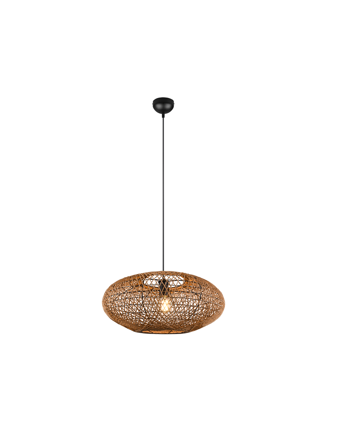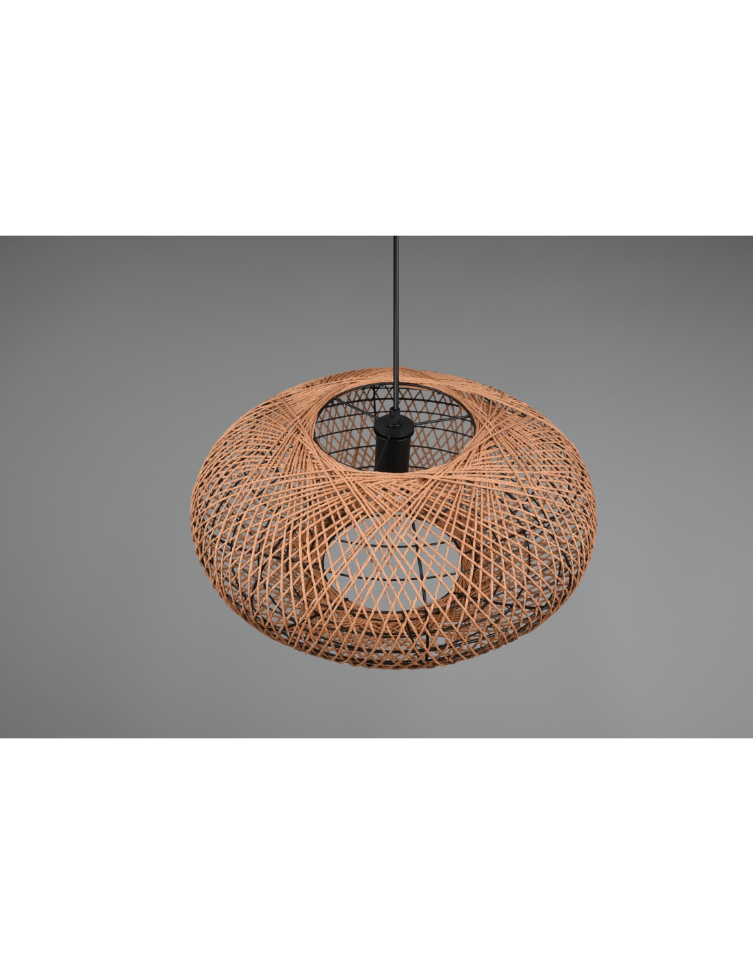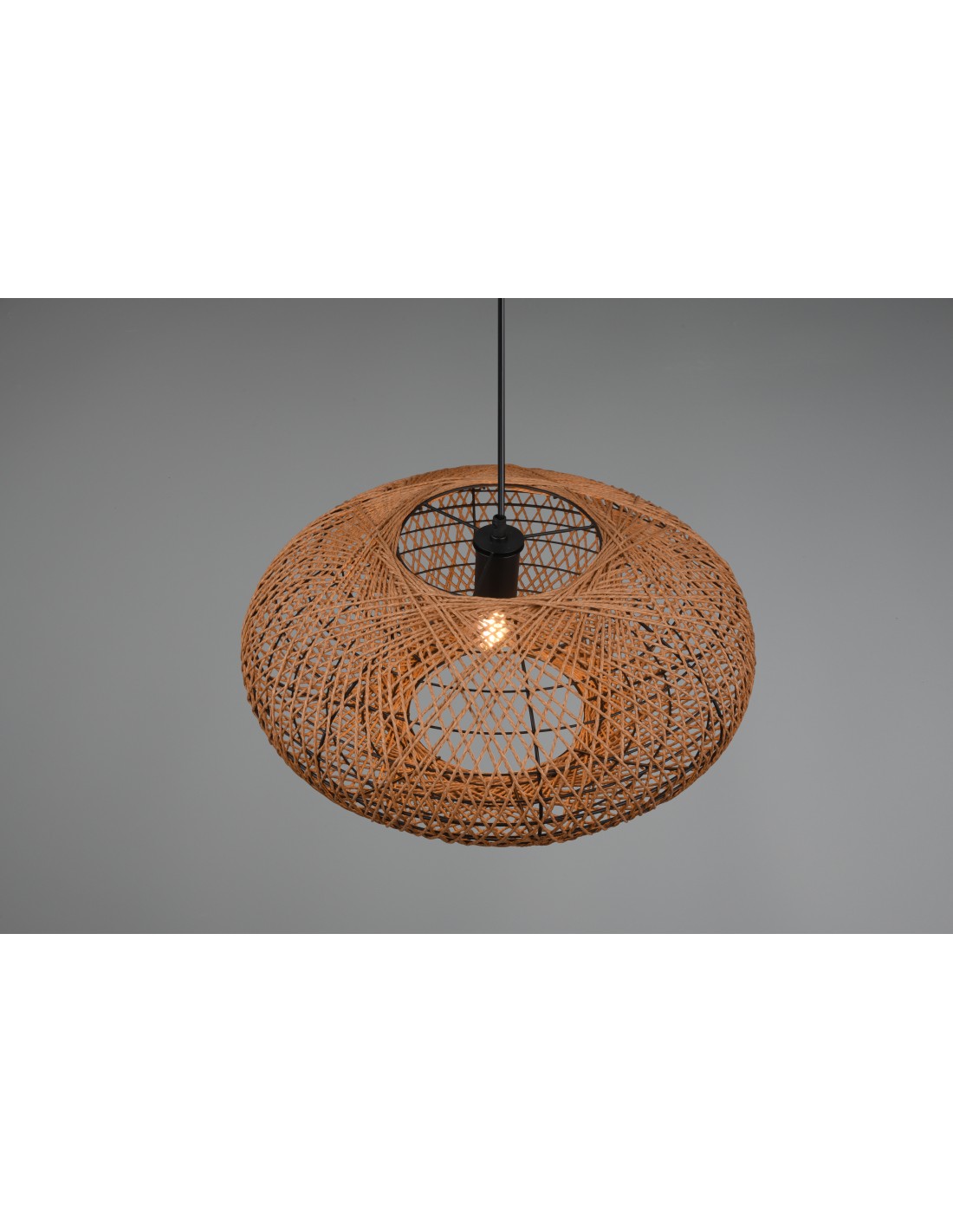 Le contraste entre le sisal naturel et le corps en métal noir mat fait de cette suspension un élément décoratif élégant, parfaitement adapté aux intérieurs contemporains et minimalistes.