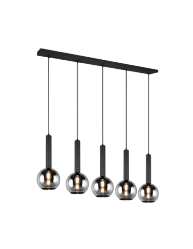 Suspension 5xE27, max. 28W, Verre fumé, Métal noir mat - Trio - Clayton