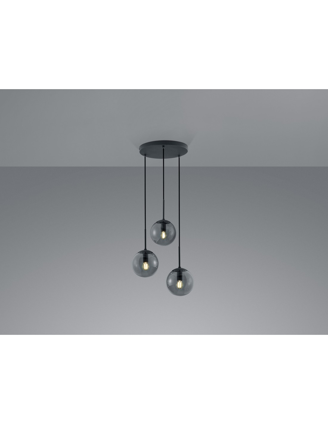 Suspension verre fumé 3xE14 - Hauteur réglable - Trio – Balini