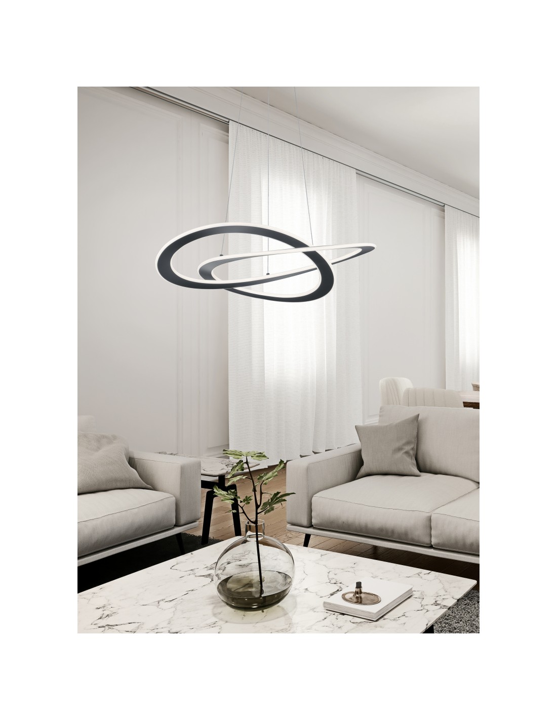 Cette suspension est équipée d’une LED SMD de 52W délivrant 6200 lumens, idéale pour illuminer vos repas ou vos moments de convivialité. Grâce au variateur SWITCH intégré, vous pouvez ajuster la luminosité sur trois niveaux (100 %, 50 % et 25 %) à l'aide d'un interrupteur mural classique, pour créer facilement l'ambiance souhaitée.