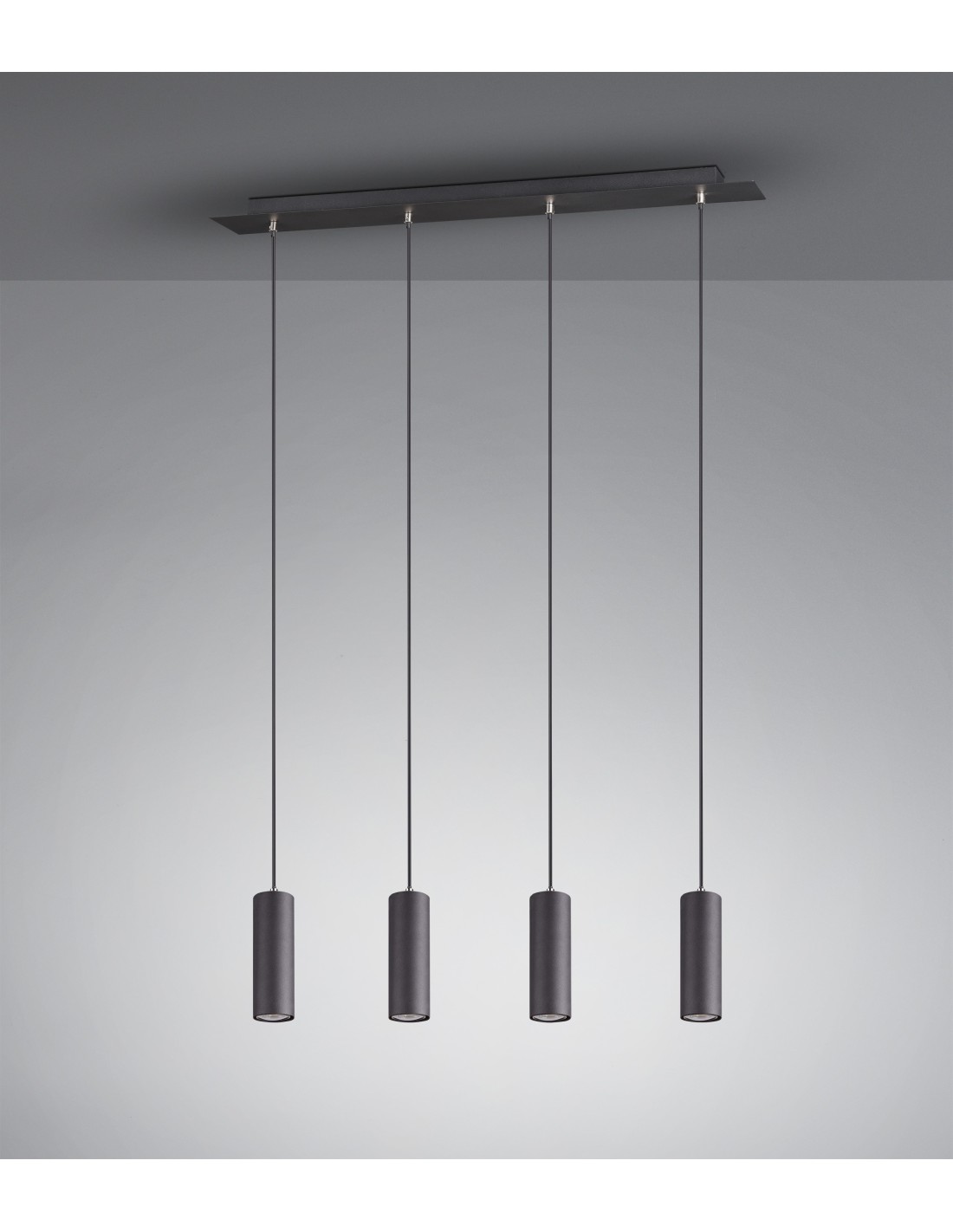 Suspension 4x GU10, max. 35W, Corps Métal, Noir Mat - Trio - Marley