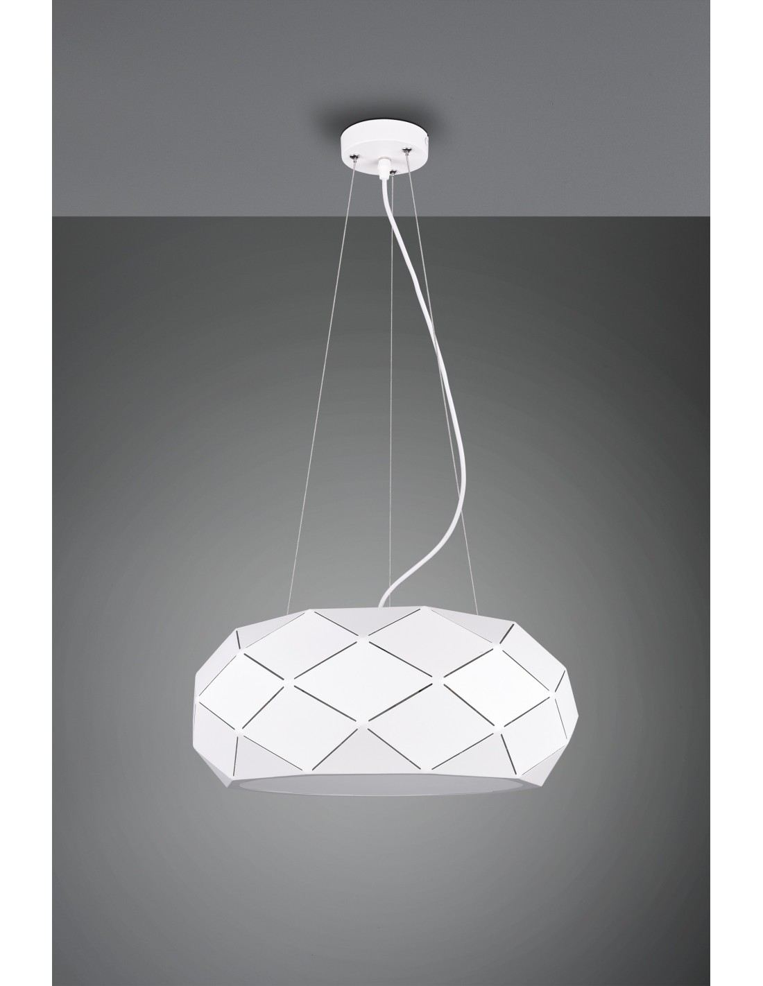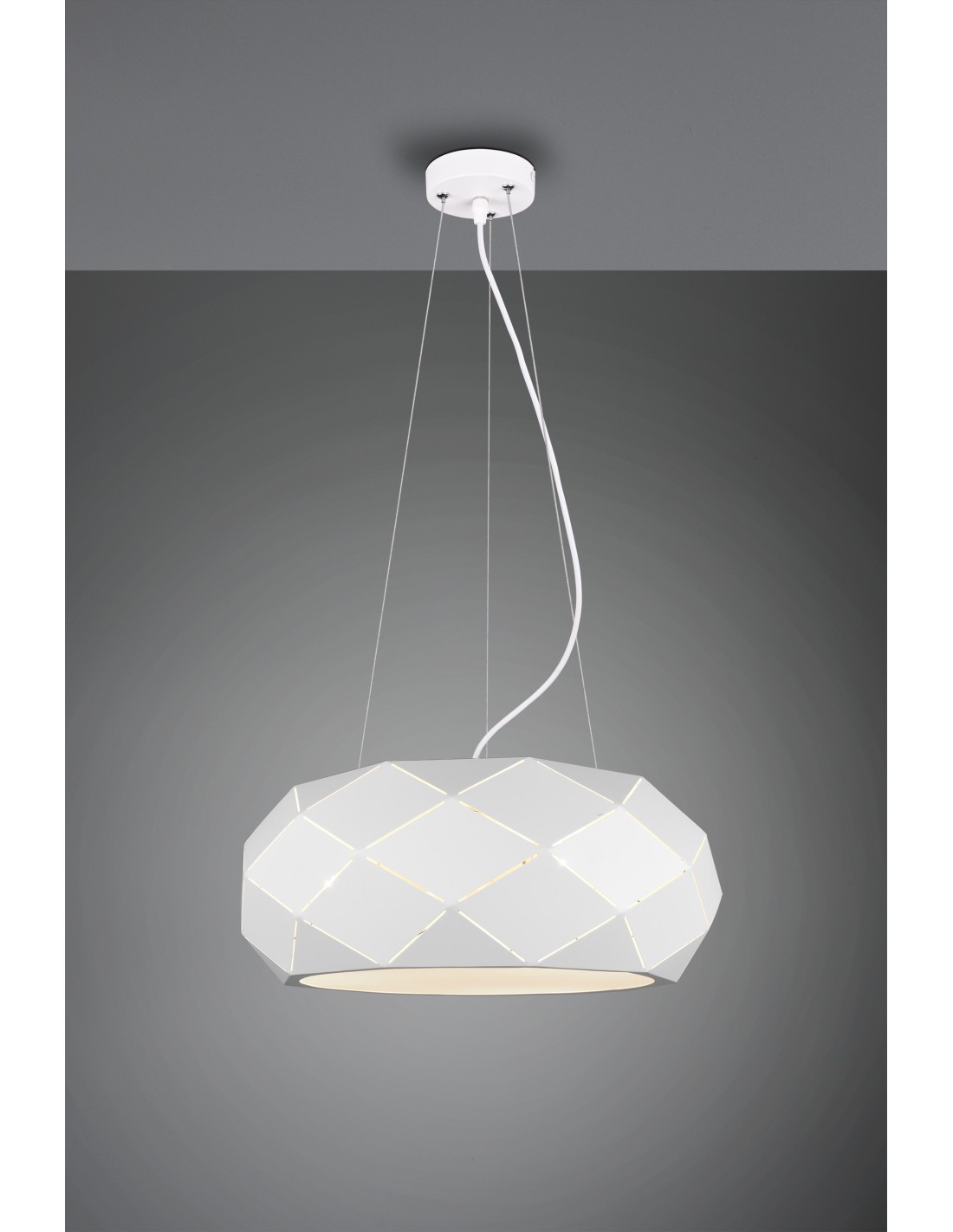 La suspension Zandor de Trio est un luminaire moderne conçu pour offrir une lumière agréable et chaleureuse. Son corps en métal blanc mat et son diamètre de 50 cm ajoutent une touche contemporaine à tout espace.