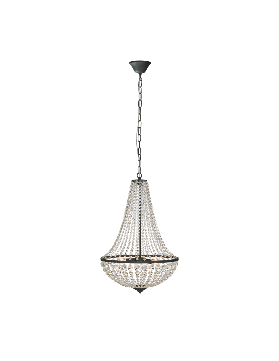 Sa finition noire sobre et ses prismes délicatement taillés apportent une touche de raffinement et d’élégance à votre salle à manger, salon ou hall d'entrée.
