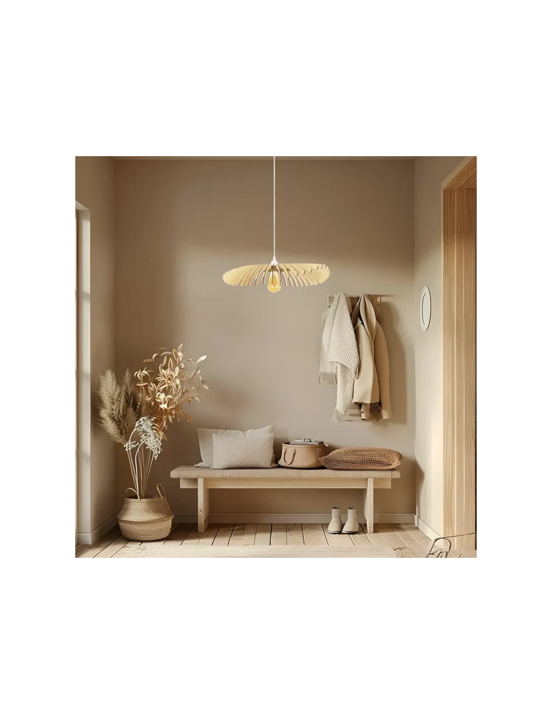 Le design moderne et naturel  de ce luminaire se mariera parfaitement avec une décoration scandinave ou contemporaine.