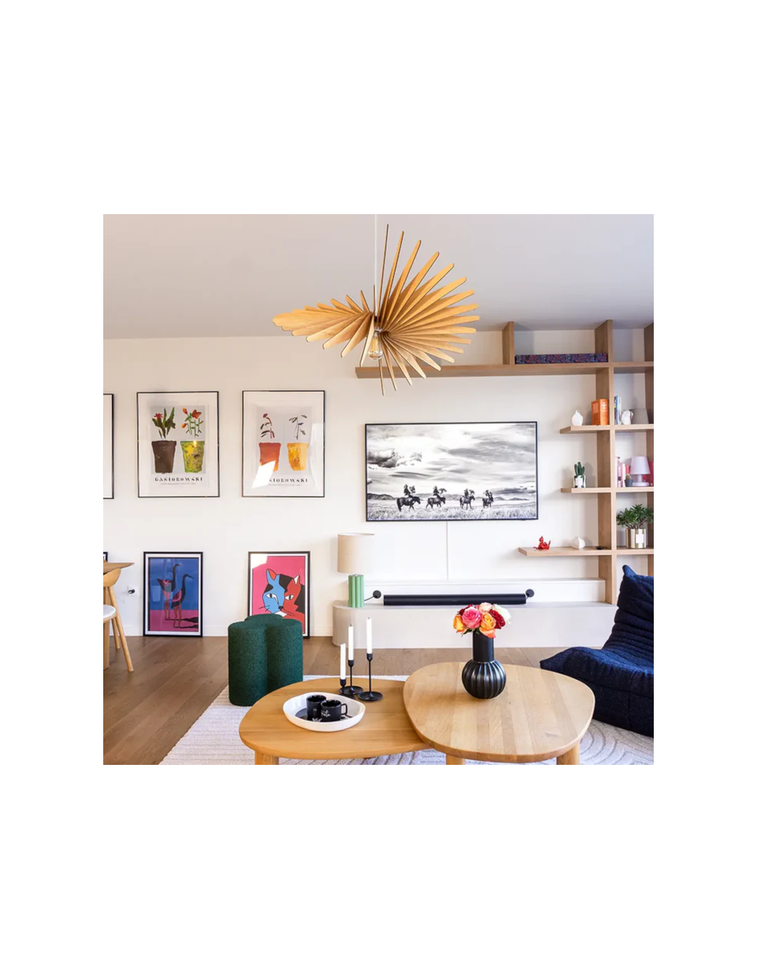 Fabriquée en France dans un démarche éco-responsable, cette suspension associe esthétique contemporaines, matériaux naturels et durabilité pour sublimer les intérieurs spacieux.
