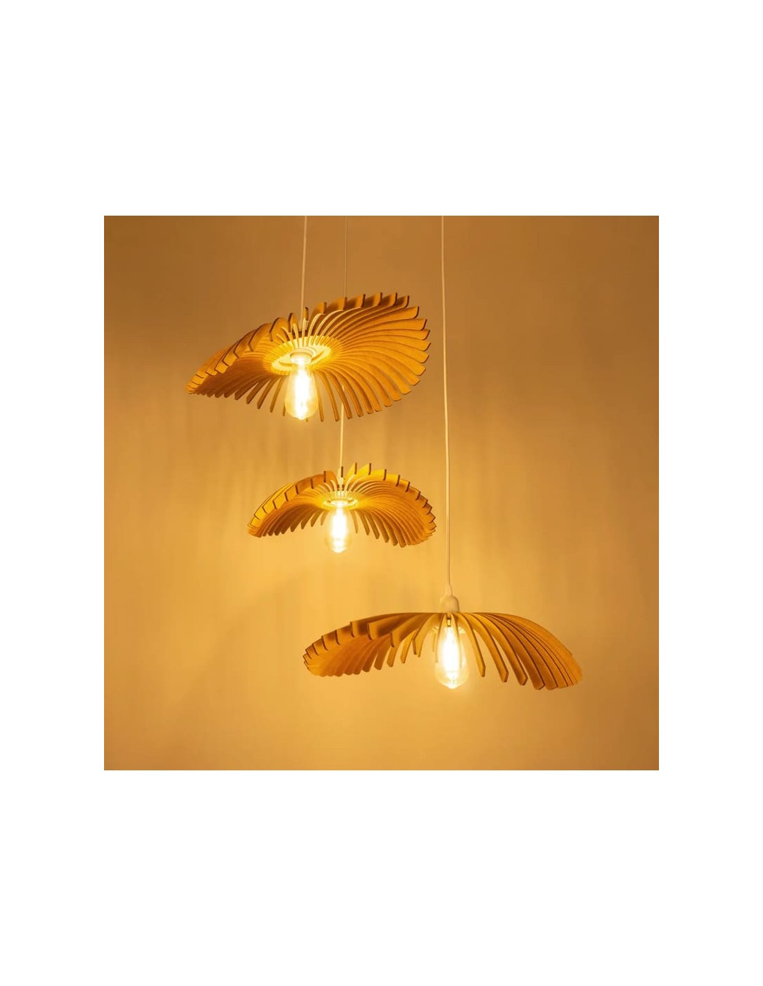 Suspension en bois teinté chêne E27 12 W - Atelier Loupiote - Cygne Trio