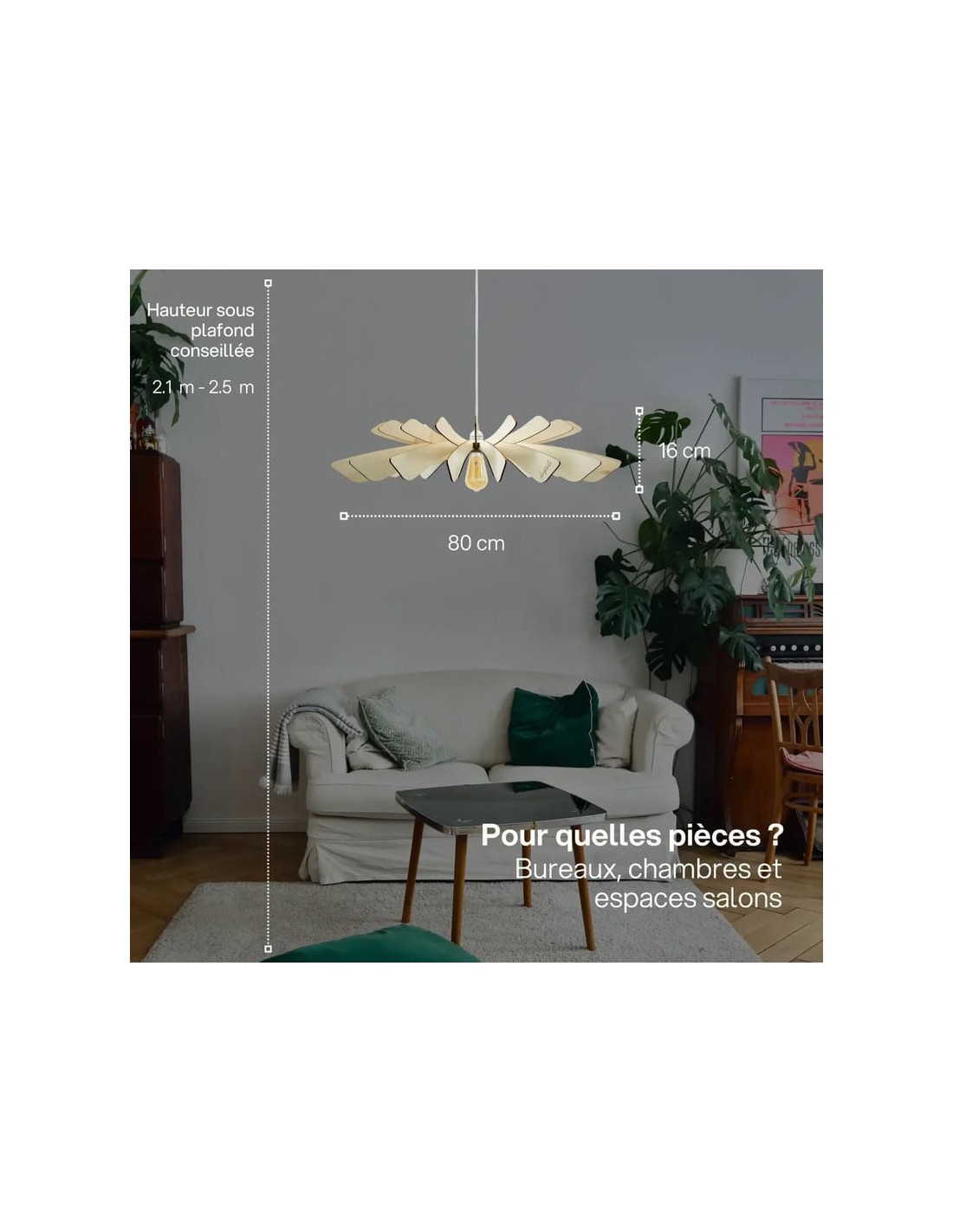 Le design moderne et naturel de ce luminaire se mariera parfaitement avec une décoration scandinave ou contemporaine.