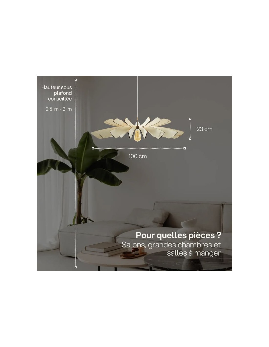 Alliant esthétique, durabilité et praticité, la suspension Aurora 100 cm reflète parfaitement le savoir-faire artisanal de la marque tout en apportant une signature lumineuse élégante et contemporaine à votre espace de vie.
