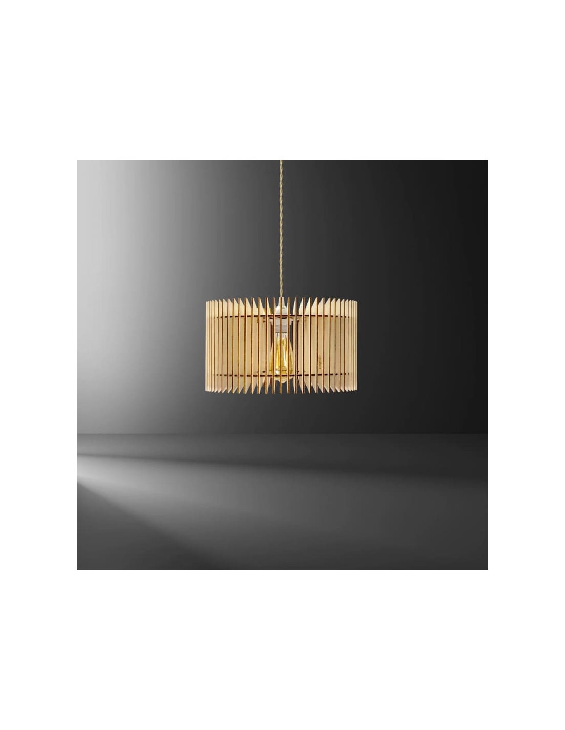 Sa structure est composée d'un assemblage de fines lamelles de bois, formant une silhouette sphérique aérienne qui laisse subtilement passer la lumière.