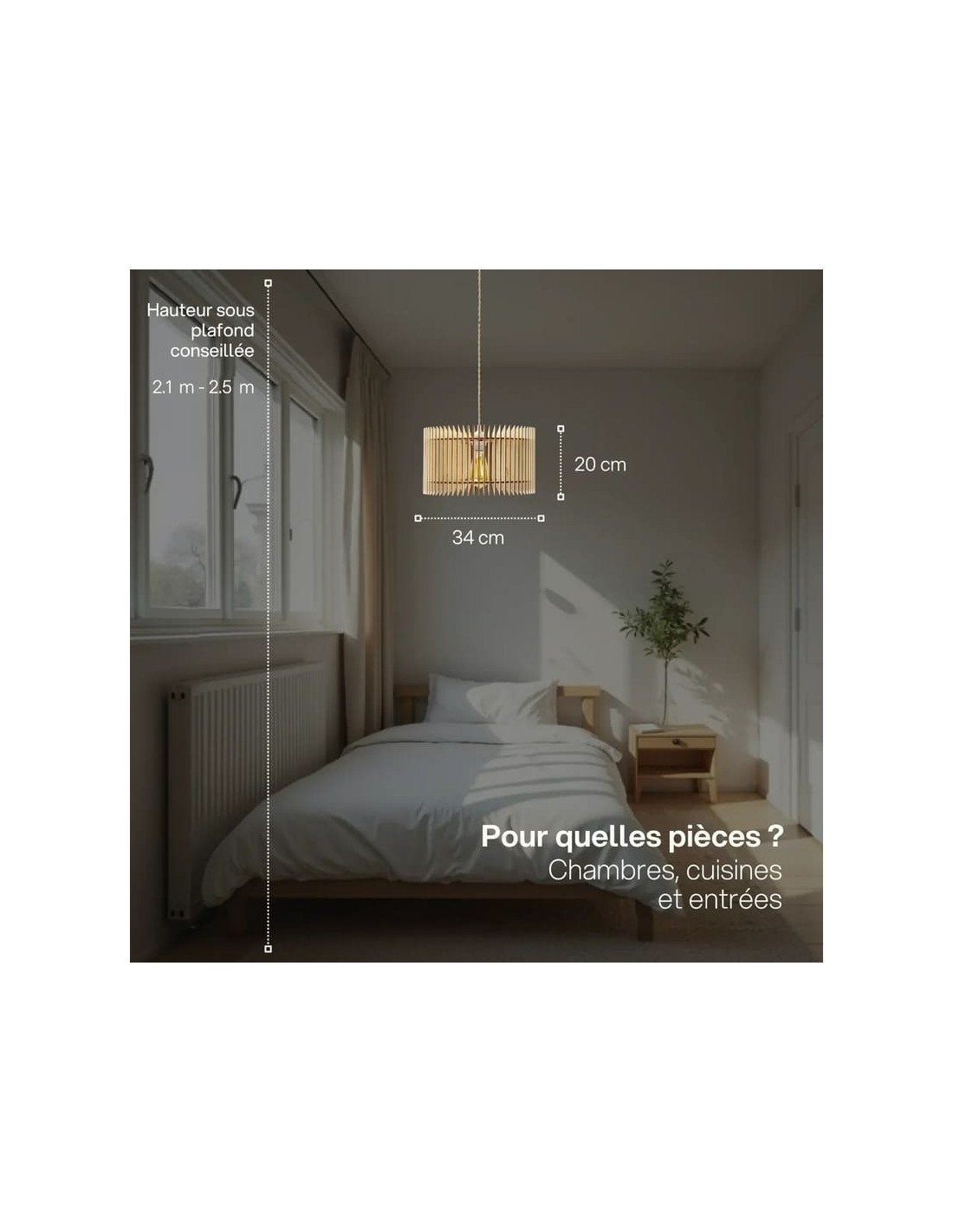 Le design moderne et naturel de ce luminaire se mariera parfaitement avec une décoration scandinave ou contemporaine.