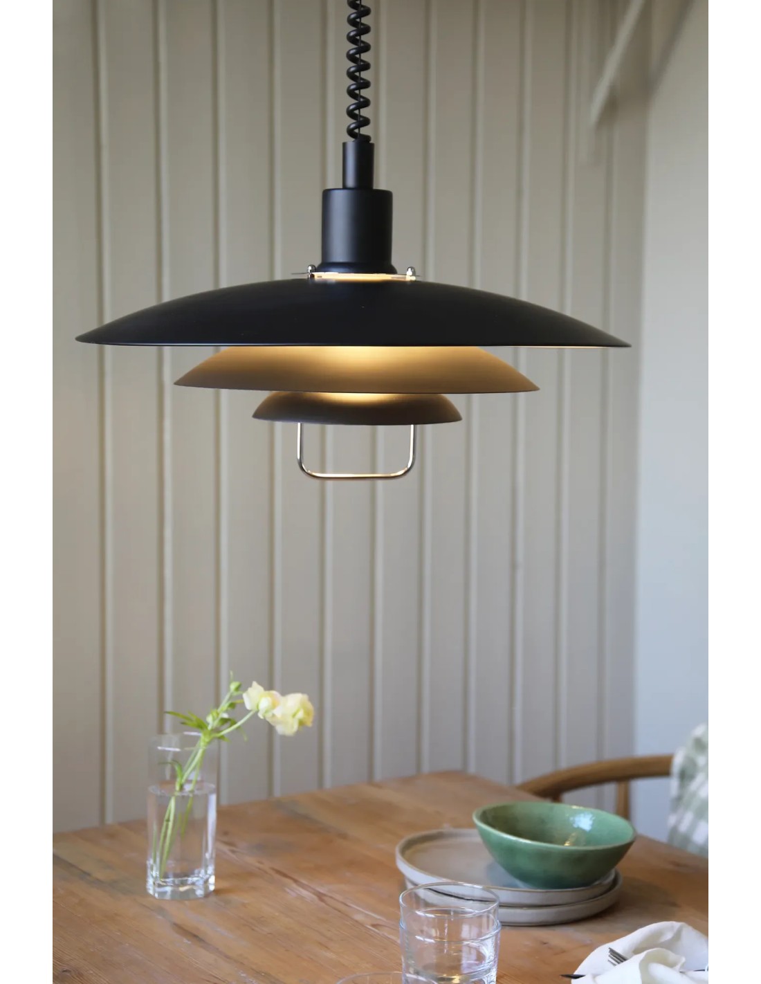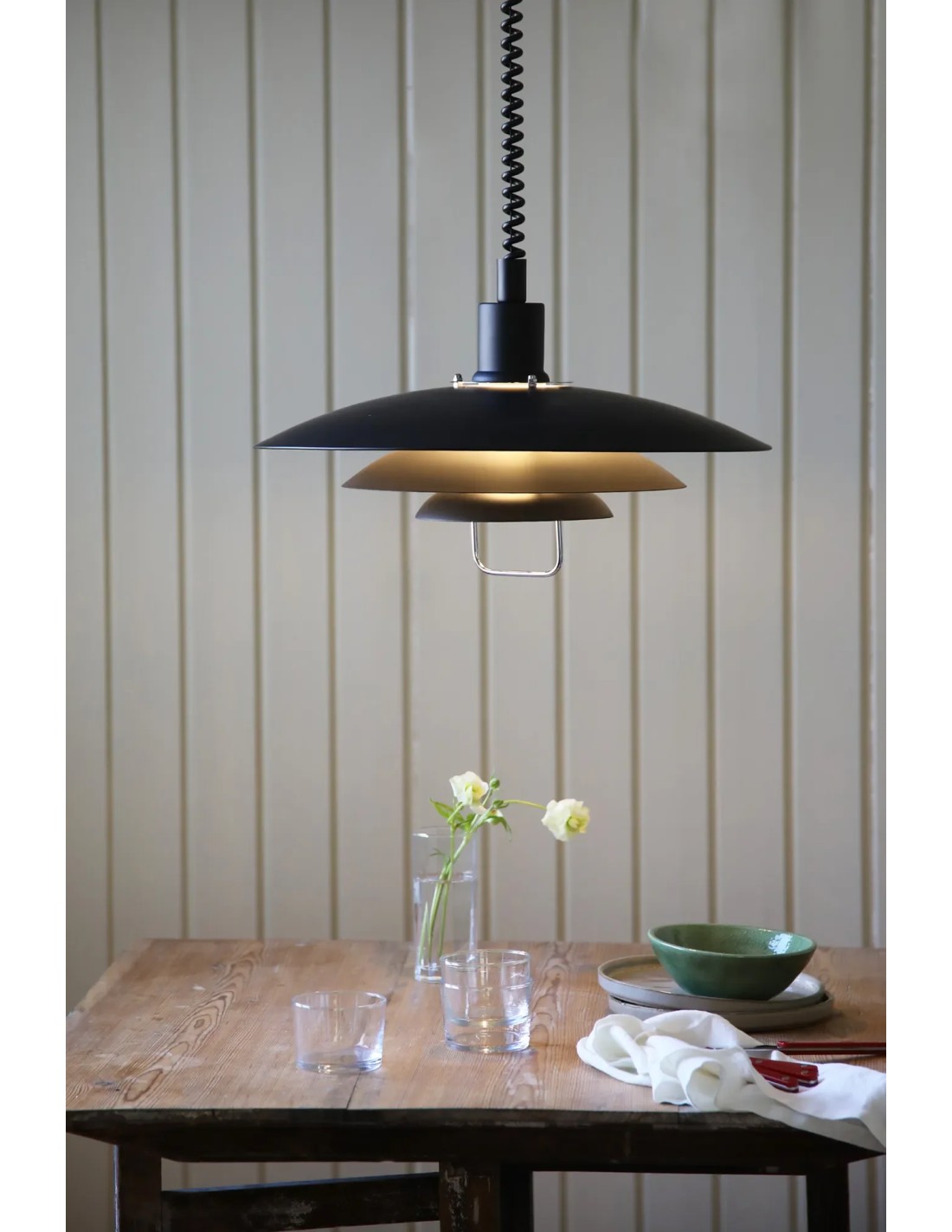 La suspension Kirkenes reprend le style des lampes de cuisine traditionnelles, connues pour leur efficacité et leur design intemporel.