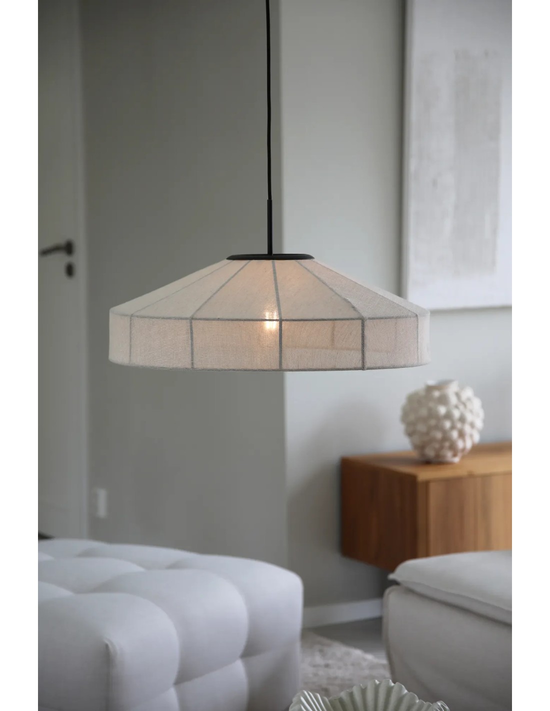 Suspension lin beige avec cadre métal noir E27 - Markslojd - Alia