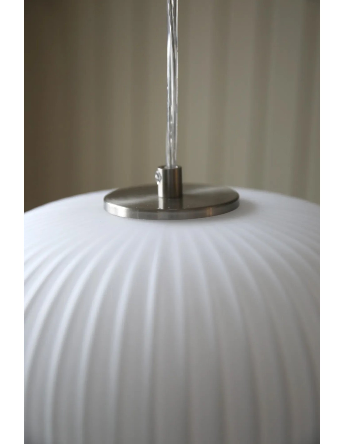 Son design épuré et sa combinaison de verre blanc et d’acier satiné en font un luminaire facile à intégrer dans tous les styles d’intérieur. Il apporte une ambiance lumineuse chaleureuse et élégante, idéale pour un espace convivial.