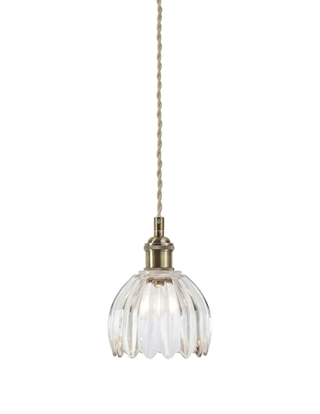 Suspension fenêtre verre transparent laiton E14 câble textile - Markslojd - Gota