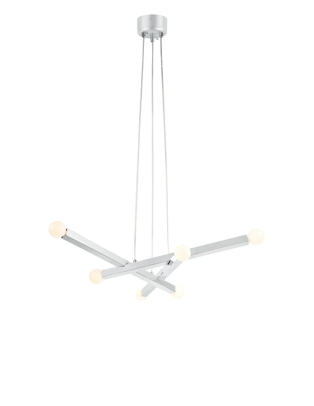 Le plafonnier Stack de la marque Markslojd est un grand luminaire au design ludique inspiré d’allumettes empilées, ici dans une finition chromée élégante.