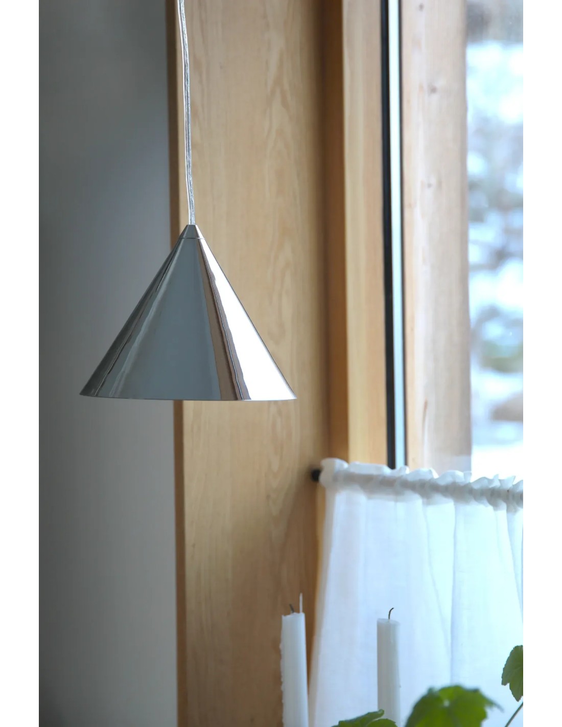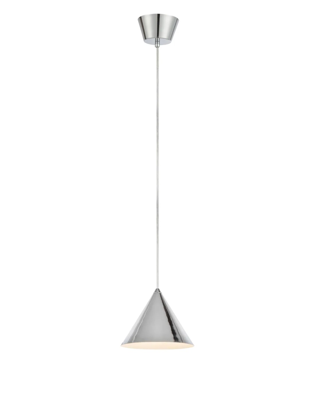 Le plafonnier Tip de la marque Markslojd en finition chromée se distingue par son design conique simple et élégant. Il s’intègre facilement dans des intérieurs modernes et lumineux.