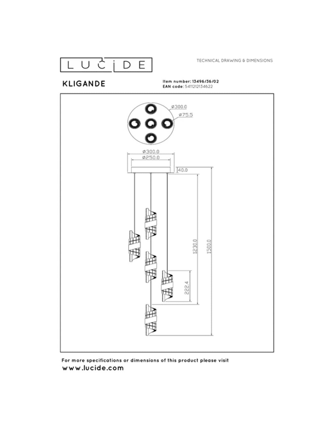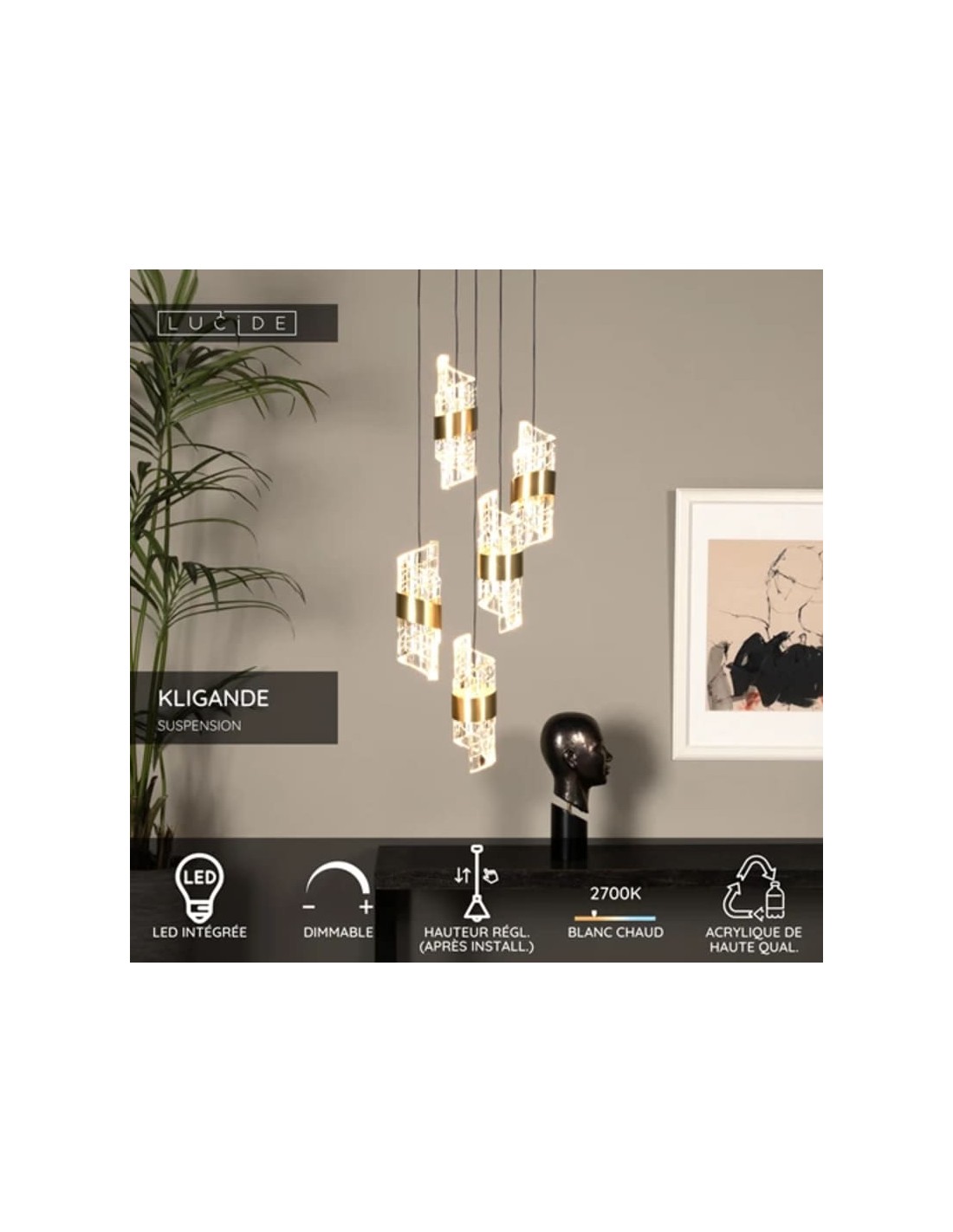 La suspension Led Kligande de la marque Lucide est un luminaire intérieur au design moderne et élégant, composé de 5 source lumineuses Led intégrées.