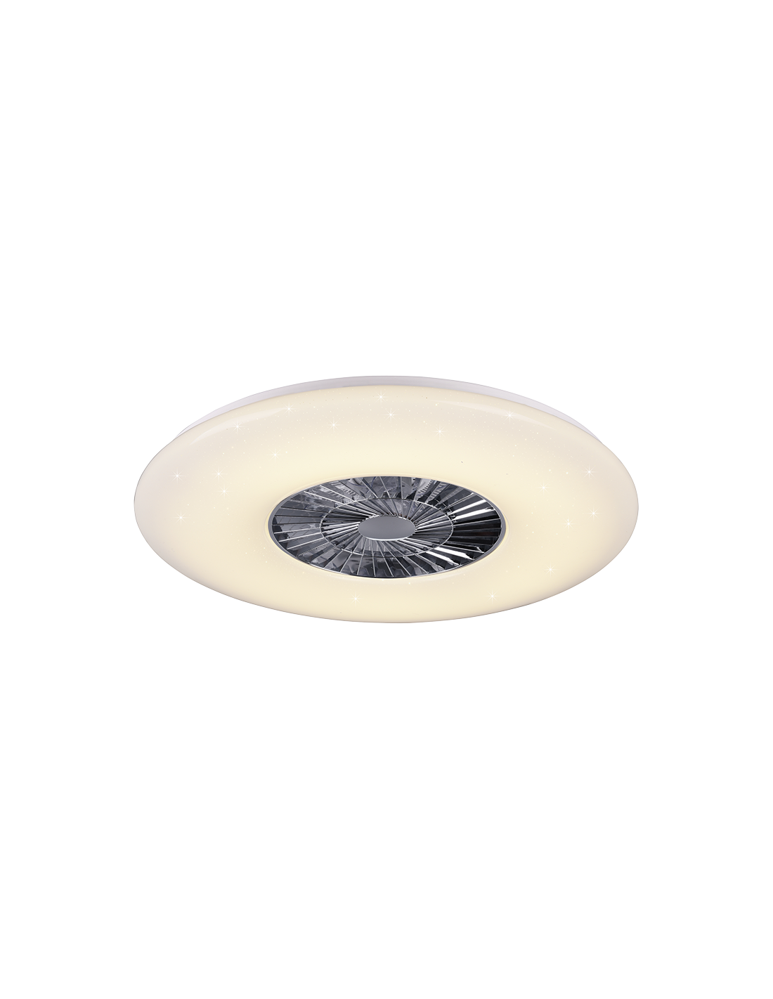 Il est constitué d'un déflecteur circulaire en plastique opalin à effet étoiles au centre duquel se trouve le ventilateur chromé.
