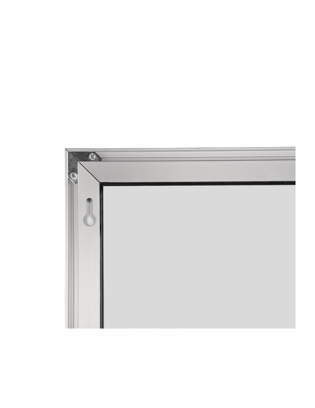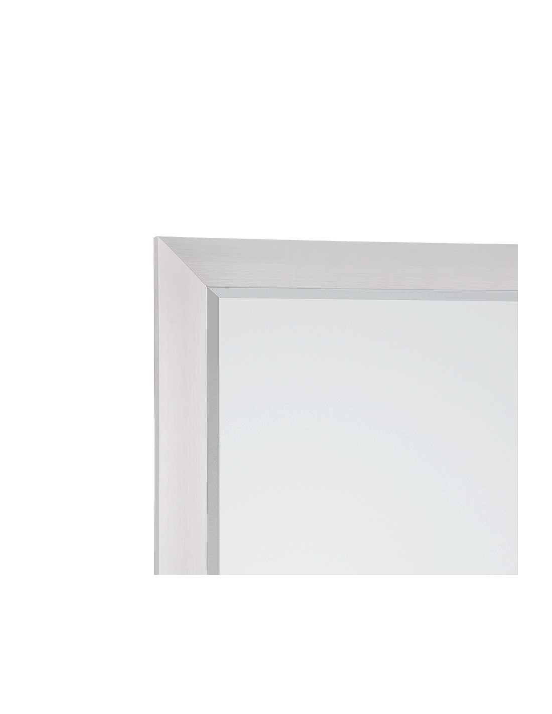 Juliette est un miroir en verre encadré de métal laqué argent mat avec un biseau intérieur couleur métal.
