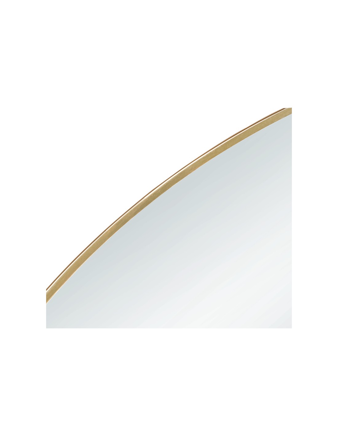 Mila est un miroir en verre rond encadré de métal laqué doré mat.