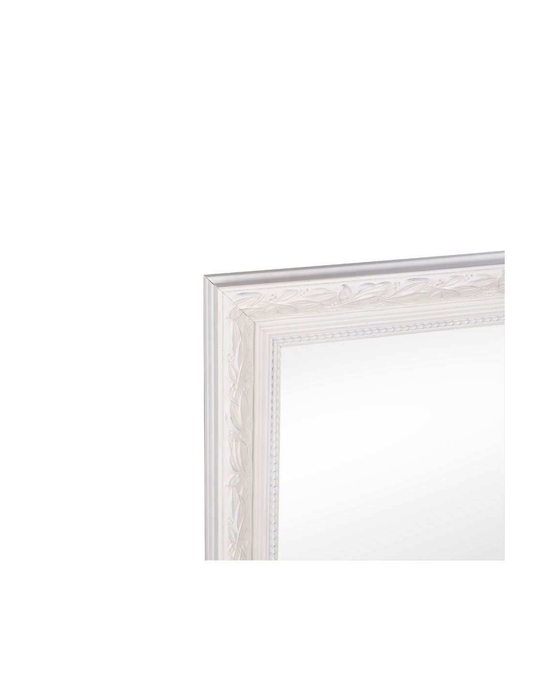 Tanja est un miroir en verre encadré de bois laqué blanc ouvragé.
