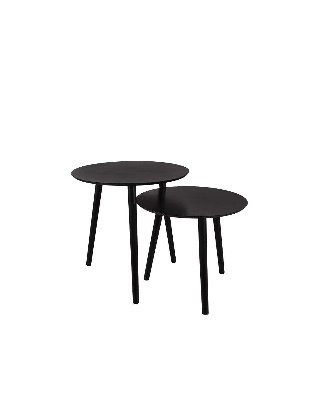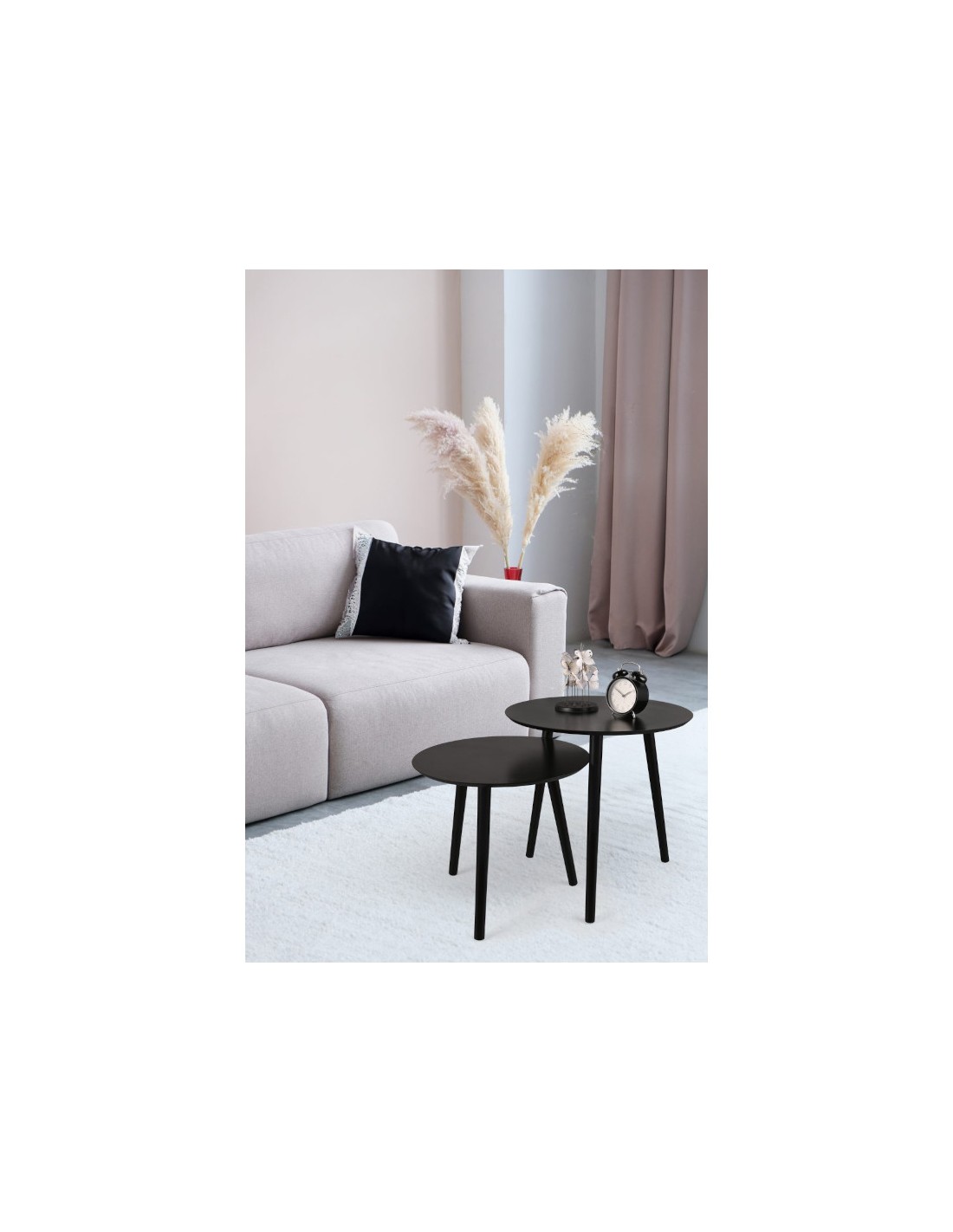 Vilana est un lot de 2 tables d'appoint gigognes en métal et MDF laqués noir mat .
