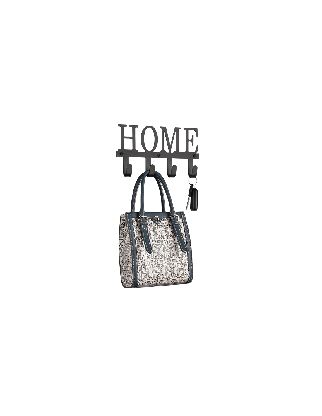 L'armature en métal noir équipée de 4 crochets de suspension est surmontée de l'inscription Home.