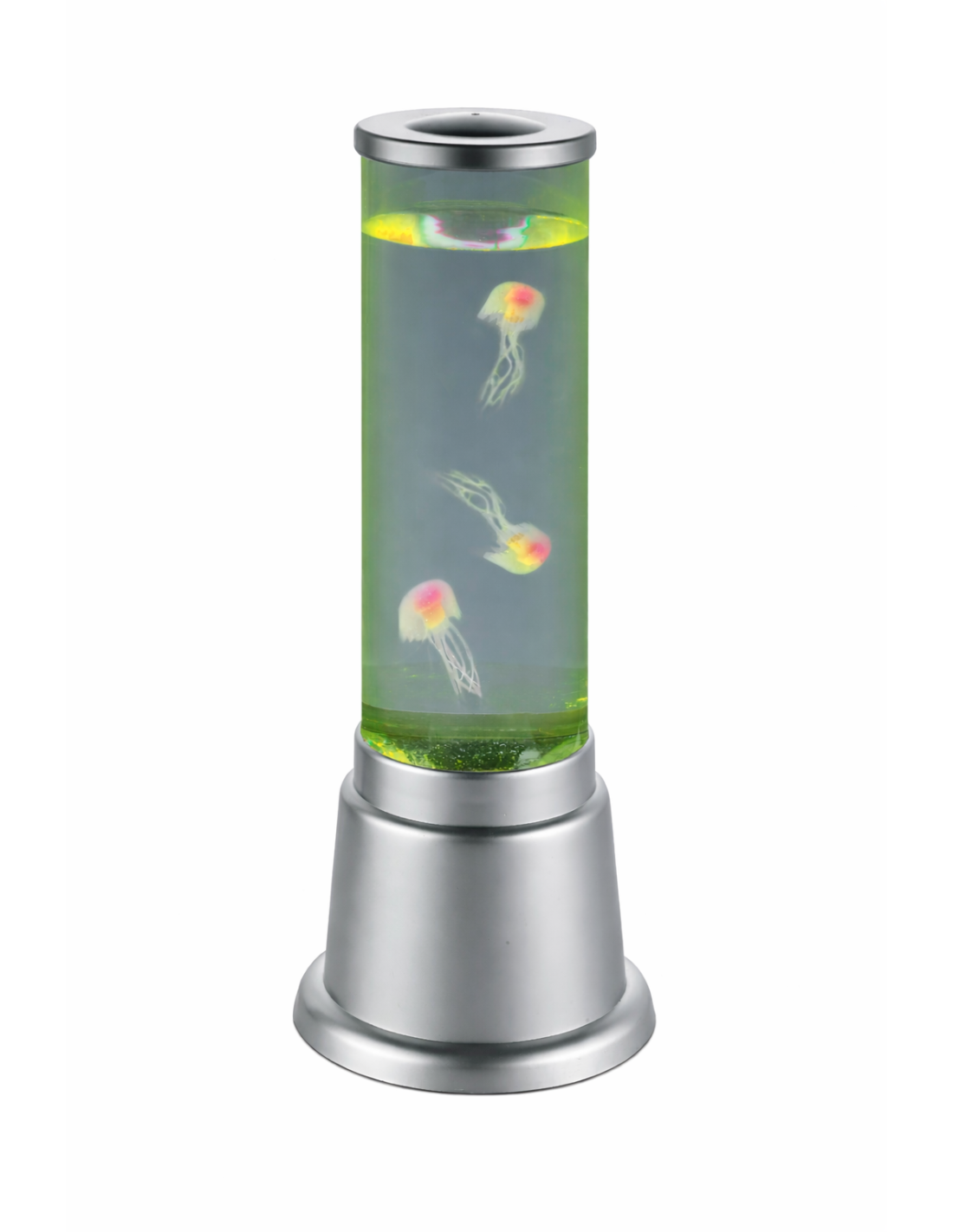 Dans le tube transparent, nagent(*) de jolies petites méduses translucides qui reflètent la couleur diffusée par les Leds RVB. Ces 3 teintes de base se mélangent harmonieusement en couleurs secondaires pour créer des effets lumineux changeants.
