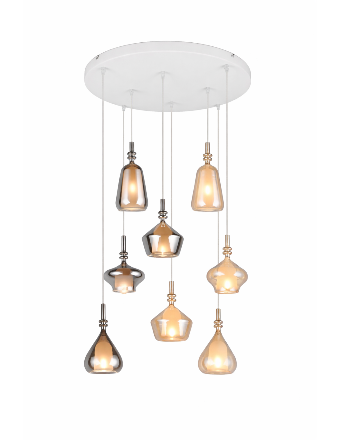 Suspension 8x E14 verre ambré et chrome blanc mat - Trio - Aldea